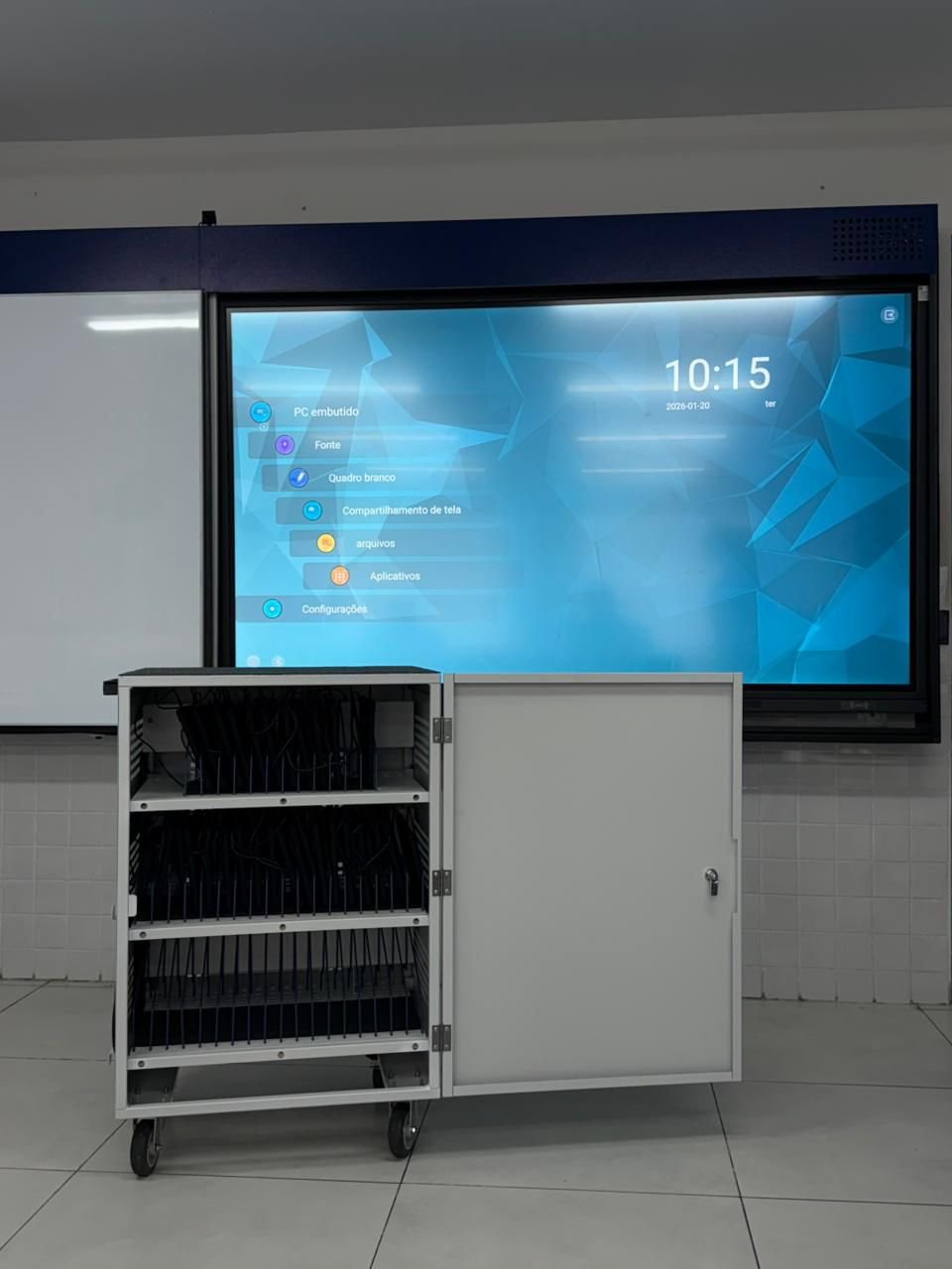 A iniciativa integra o projeto das salas híbridas, que vem promovendo a modernização dos espaços educacionais com a instalação de dois quadros brancos, lousa interativa, caixas de som e câmeras para gravação e transmissão das aulas.