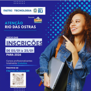 GIRO RIO DAS OSTRAS – O ano de 2026 começou com novas oportunidades de qualificação profissional na cidade. A Fundação de Apoio à Escola Técnica (FAETEC) Rio das Ostras, na ZEN, já está com inscrições abertas para o processo seletivo 2026/1 de cursos profissionalizantes na unidade do município, oferecendo 400 vagas gratuitas com duração de cinco meses.
